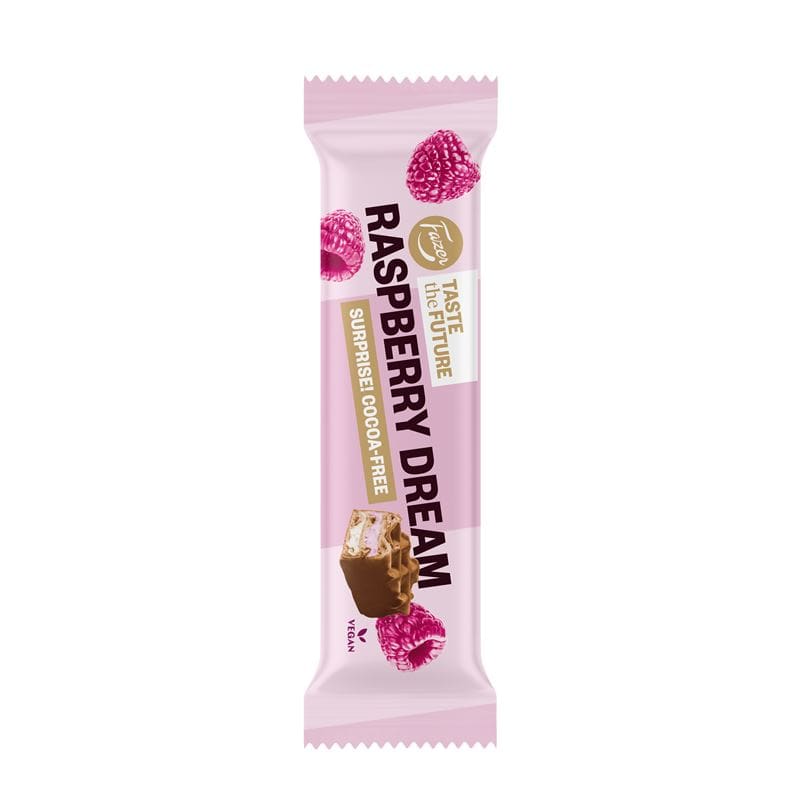 Raspberry Dream är ett tydligt exempel på denna ambition: krispiga rån med lager av hallon- och vaniljfyllning, täckta med ett överdrag av mältad råg i stället för kakao. Efter att tidigare ha presenterat handgjorda kakaofria produkter, innebär denna lansering ett viktigt steg i Fazers utveckling – den första fullskaliga fabriksproduktionen.