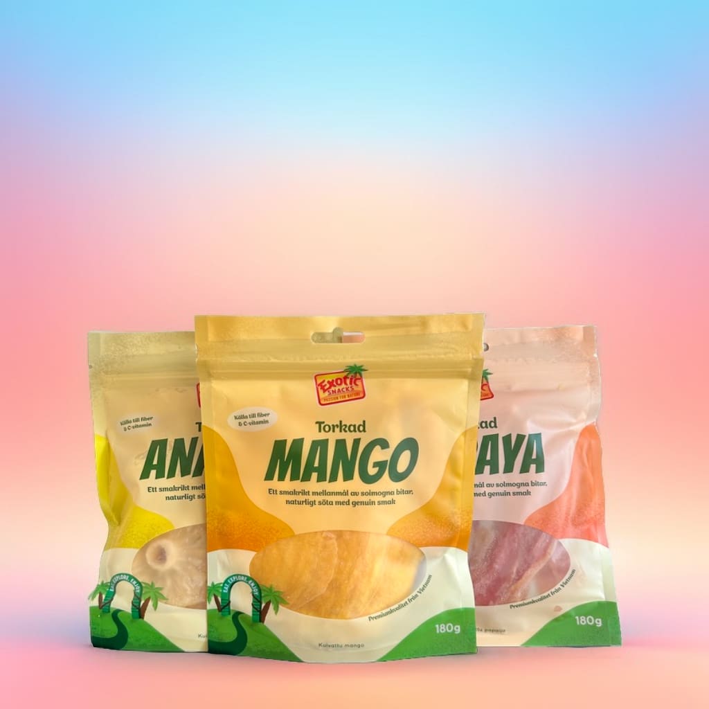 Vi på xperhotelsandtable.se har återigen tagit oss an den angenäma uppgiften att testa nyheter från Exotic Snacks, ett varumärke vi lärt oss att uppskatta för deras innovativa och spännande smakkombinationer. Denna gång har vi fått möjligheten att fördjupa oss i deras tropiska utbud, närmare bestämt påsarna fyllda med torkad Ananas, Mango och Papaya.